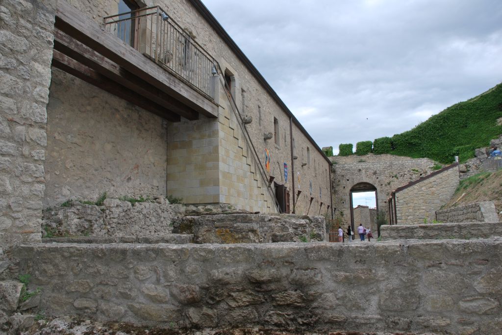 L’intero complesso è circondato da possenti mura merlate, intervallate da torri di difesa che garantivano un controllo totale del territorio. Il castello era quasi inespugnabile grazie alla sua posizione elevata e alla solidità delle sue strutture.