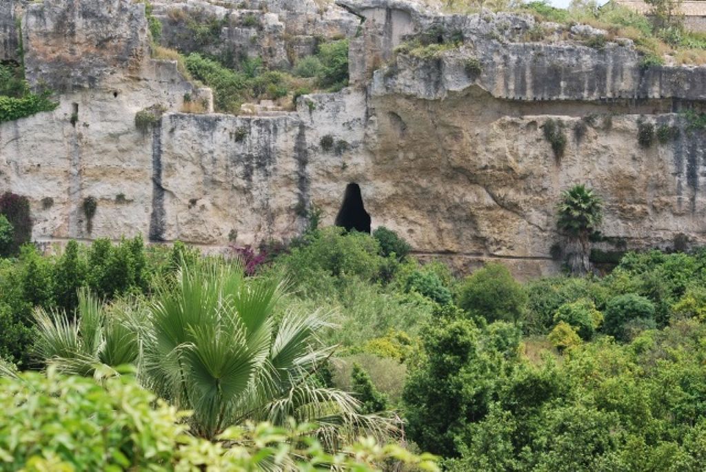 Nell’angolo nord-ovest della Latomia del Paradiso si trova l’Orecchio di Dionisio, famoso per l’eco straordinario. Il suo nome è dovuto al Caravaggio che collegò la sua forma sinuosa con la leggenda del tiranno Dionisio che rinchiudeva i prigionieri per ascoltarne i segreti.
