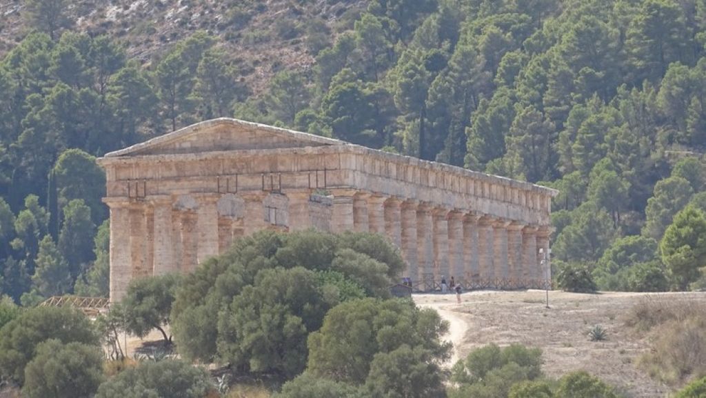 Il tempio dorico, costruito intorno alla metà del V secolo a.C., è uno dei meglio conservati dell’antichità. Nonostante non sia mai stato completato (mancano infatti le decorazioni interne e il tetto), si distingue per il suo stile dorico semplice e armonioso. Il tempio è composto da 36 colonne ed è stato costruito su una piattaforma rialzata. La sua funzione originaria non è certa, ma è probabile che fosse un tempio non legato a una divinità specifica o addirittura una struttura simbolica per rappresentare la grandezza di Segesta agli occhi dei visitatori stranieri.
