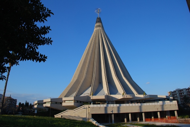 La costruzione del Santuario è iniziata nel 1966, dopo che il progetto fu affidato agli architetti francesi Michel Andrault e Pierre Parat a seguito di un bando di concorso internazionale. La costruzione si è conclusa solo nel 1994 a causa di molte polemiche legate alla modernità del progetto.