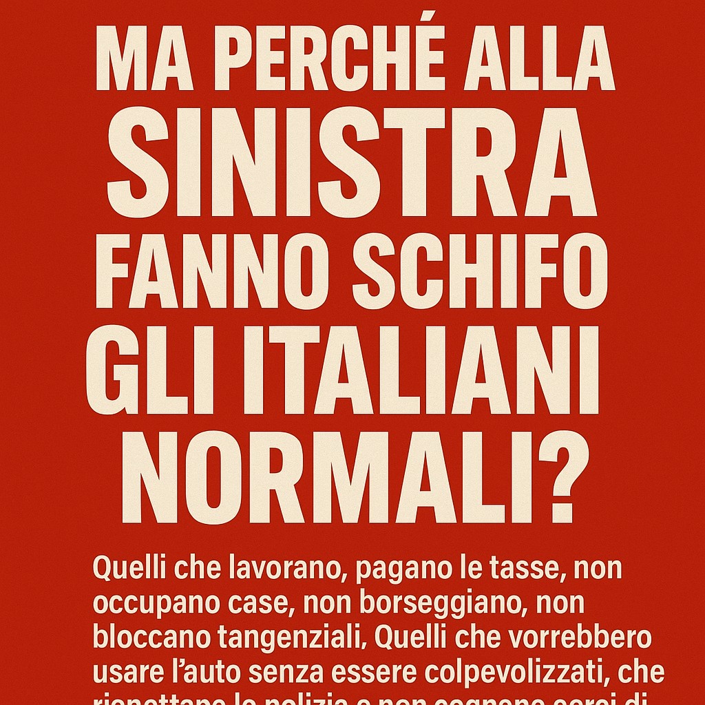 C’è un’Italia silenziosa, concreta, che lavora, paga le tasse, rispetta la legge, cresce figli con sacrificio e cerca solo di vivere in pace. È l’Italia della maggioranza: quella che non chiede privilegi, non fa rumore, non si sente una vittima, non vive di slogan. Ma è proprio quest’Italia che la sinistra sembra aver dimenticato — o peggio, disprezzare. La sinistra odia gli italiani normali.