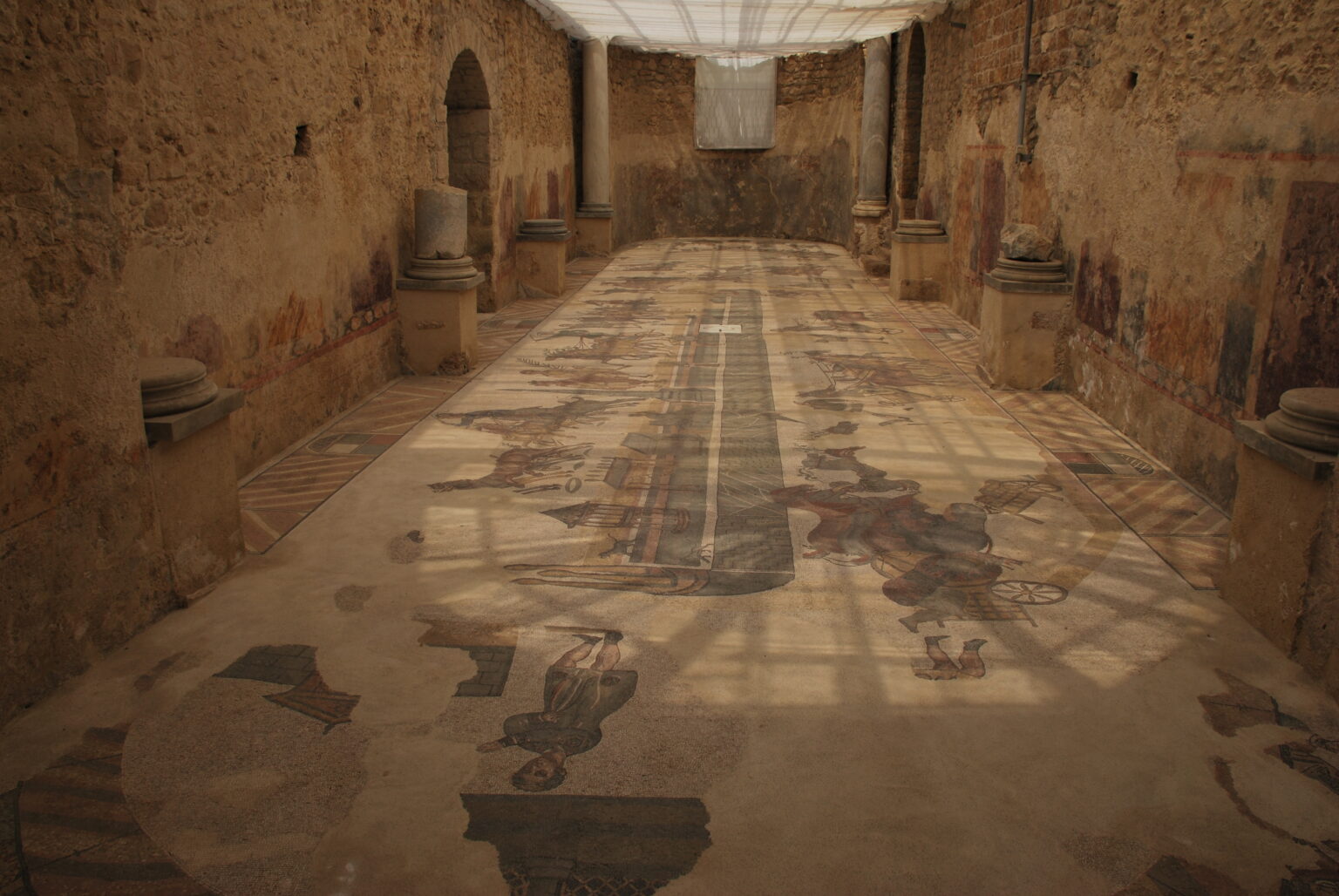 Situato nel corridoio lungo 60 metri, questo mosaico rappresenta scene di caccia e cattura di animali selvatici, destinati ai giochi circensi. La precisione dei dettagli e la vivacità delle scene offrono uno spaccato della vita nell’antica Roma.