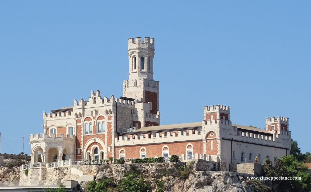 Alzando lo sguardo dalla costa, è impossibile non notare la sagoma elegante e misteriosa del Castello Tafuri. Costruito nel 1933 per volere del marchese Bruno di Belmonte, l’edificio sorge su un promontorio roccioso a picco sul mare, proprio accanto ai resti dell’antica tonnara (attiva fino agli anni ’90).